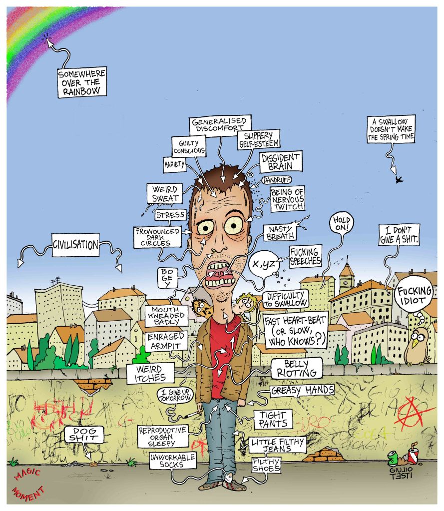an artist who tries with his hand-drawn illustrations to candidly peel the human condition
